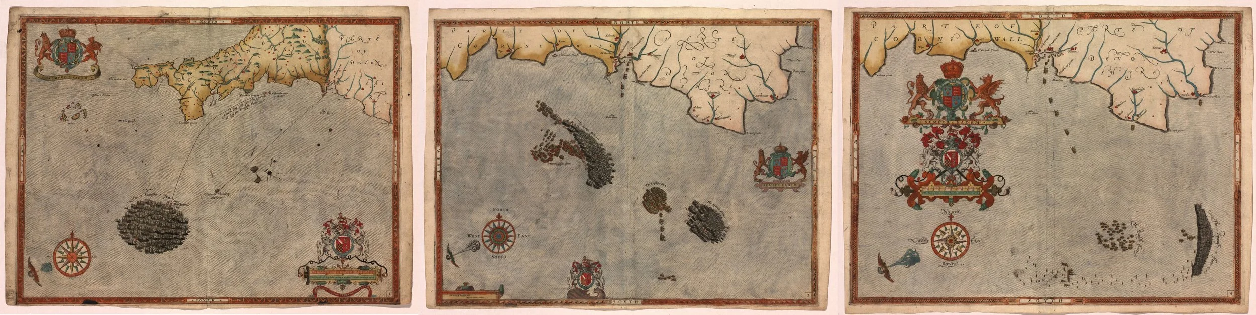 Strip Map showing the progress of the Armada in August 1588, the sixth panel shows the attack of the fireships